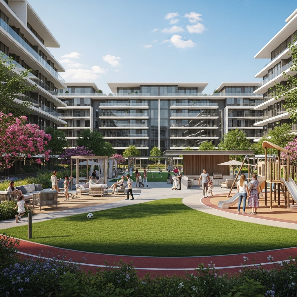 Tiện ích ngoại khu đồng bộ bao gồm công viên thể thao, sân vận động đa chức năng chuẩn quốc tế, hồ điều hòa trong xanh mát lành và các không gian xanh rộng lớn góp phần giảm nhiệt đô thị, nâng cao chất lượng không khí cho cộng đồng. Những khu vui chơi trẻ em hiện đại giúp phát triển toàn diện thế hệ tương lai trong môi trường an toàn tuyệt đối. Bên cạnh đó, trung tâm thương mại – dịch vụ cao cấp mang đến trải nghiệm mua sắm, ẩm thực và giải trí đa dạng ngay trong tầm tay cư dân, giúp cuộc sống thêm phần tiện nghi và phong phú.